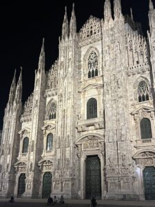 My first impressions of Milan itself were nothing short of amazing. The city is absolutely beautiful, and the architecture is unlike anything I’ve seen before. Every corner has a story, and the buildings have so much character. You don’t truly realize how big and diverse the world is until you walk through Milan’s streets surrounded by breathtaking design and history. Compared to Texas, where most buildings are more modern or practical, Milan’s mix of classic and avant-garde architecture gives it a unique and timeless charm.